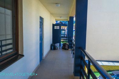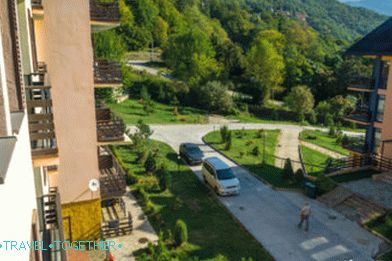 Spacious classy apartment in which there is a studio (hall compatible with kitchen) and a separate bedroom with air conditioning. Posh balcony overlooking the complex, but a little to the side you can clearly see the mountains and valley of the river Mzymta. There we had breakfast every morning and could not break away from the species.